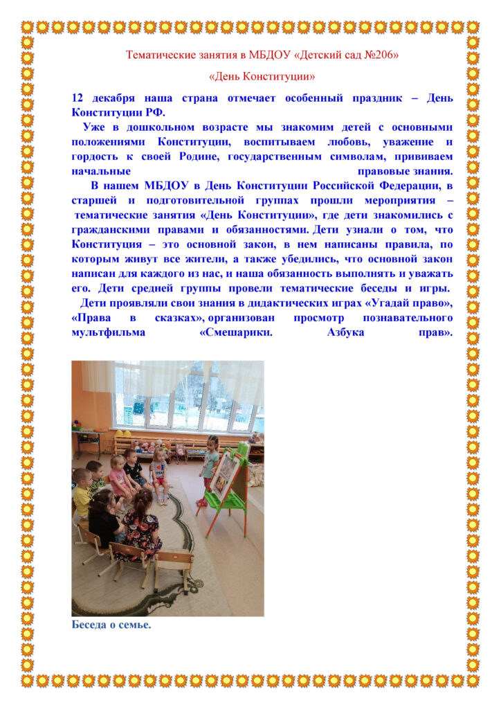 Тематические занятия в МБДОУ «Детский сад №206» «День Конституции» sait24.12.2025 Новости ← День Матери